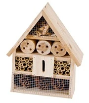 Het bijen- en insectenhuis is handgemaakt van natuurlijk hout (spar, bamboe, dennenappels) en dient als nest- en overwinteringshulpmiddel voor nuttige insecten zoals wilde bijen, lieveheersbeestjes, vlinders, gaasvliegen en meer. Menselijk ingrijpen in de natuur heeft veel natuurlijke levensruimte van insecten beperkt of vernietigd, maar nuttige insecten vinden een nieuw thuis in het bijen- en insectenhuis. De nuttige diertjes zorgen voor bestuiving in uw tuin en worden gebruikt voor natuurlijke ongediertebestrijding en zorgen zo voor een ecologisch evenwicht. Het is 25x30x8 cm.