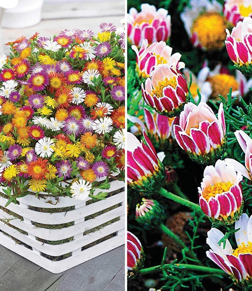 De bloeiende bodembedekker collectie bestaat uit 5 ijsbloemen Wheels of Wonder en 3 afrikaanse pyrethrum