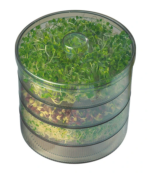 Met de Kiepenkerl spruiten box wordt het kweken van spruiten kinderspel, want het kweken van kiemen in deze box lukt heel gemakkelijk. Heerlijk te gebruiken bij salades, als groentebijlage of ter verfijning van rijst-, meel- aardappel- en eiergerechten. De Kiepenkerl spruiten box is eenvoudig te gebruiken. Optimale watergave, gemakkelijk schoon te maken (kan in de afwasmachine), hygienisch en neutraal van smaak. Gemaakt van veilig doorzichtig kunststof 19 cm hoog en 19 cm doorsnee.
